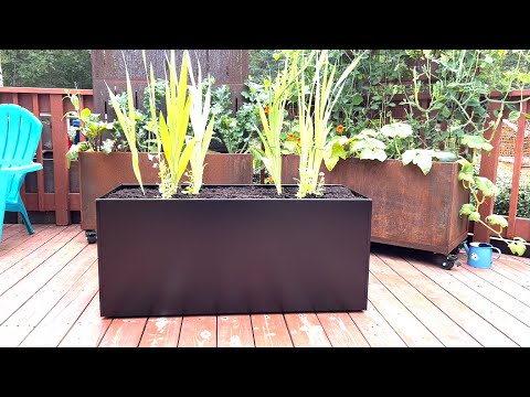 Planters are shaped from metal by skilled craftsmen utilizing precise folding of the metal to create a planter that uses no welding during the manufacturing process and assembles into a rectangular shape from five panels. Planter panels interlock together to form incredibly solid plant container that can accommodate large plants. Most of all, the planter is simple, modern and minimalistic. Aluminum planters are powder coated to provide a vibrant durable finish.