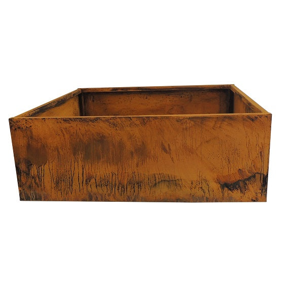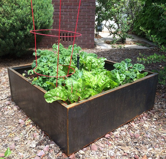 Planter bed is shaped from metal by skilled craftsmen utilizing precise folding of the metal to create a planter bed that assembles into a rectangular shape from four panels. Planter bed panels interlock together to form incredibly solid plant container that provides maximum planting area. Most of all, the planter bed is simple, modern and minimalistic. Corten Steel planter beds do not ship pre-weathered and will arrive with the bare steel finish which will have to weather over time to develop a golden brown rust color and texture. Planter beds should be placed on grass during weathering process to avoid staining to adjacent material.