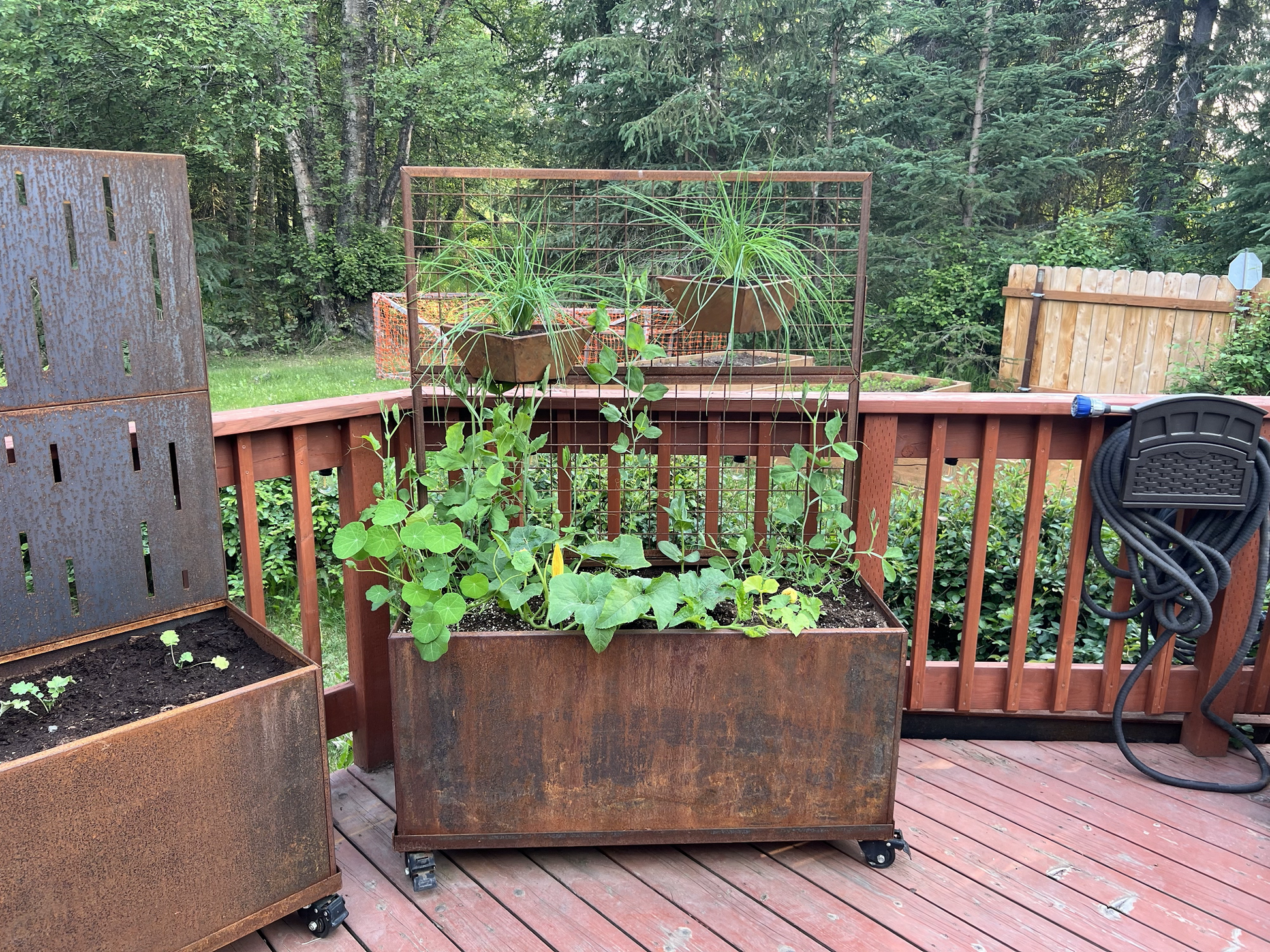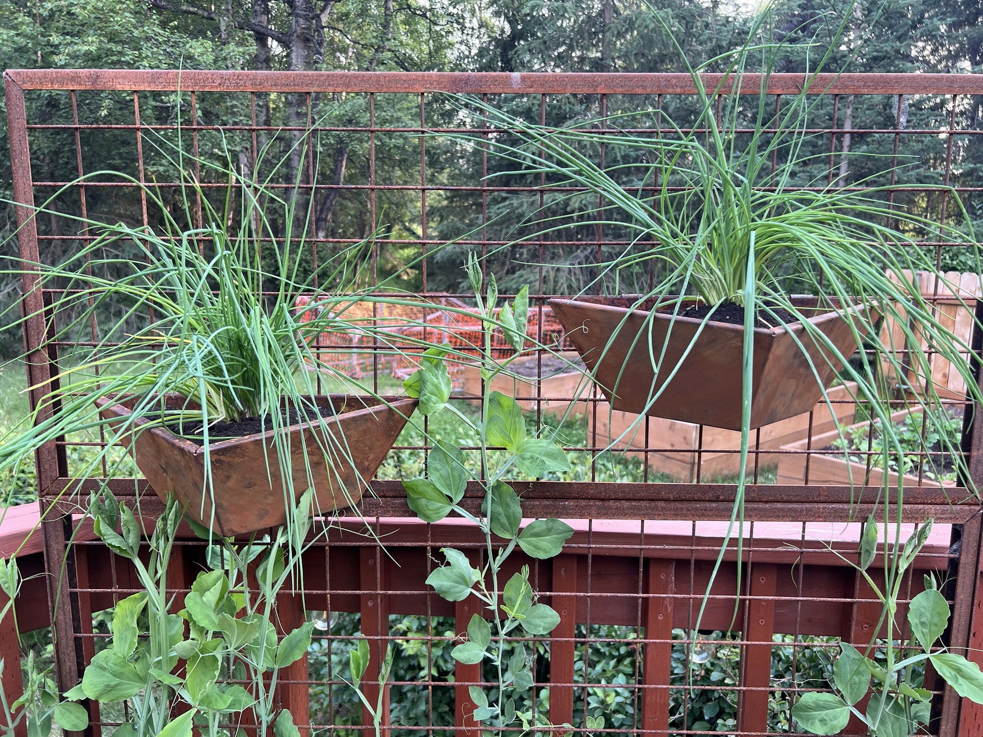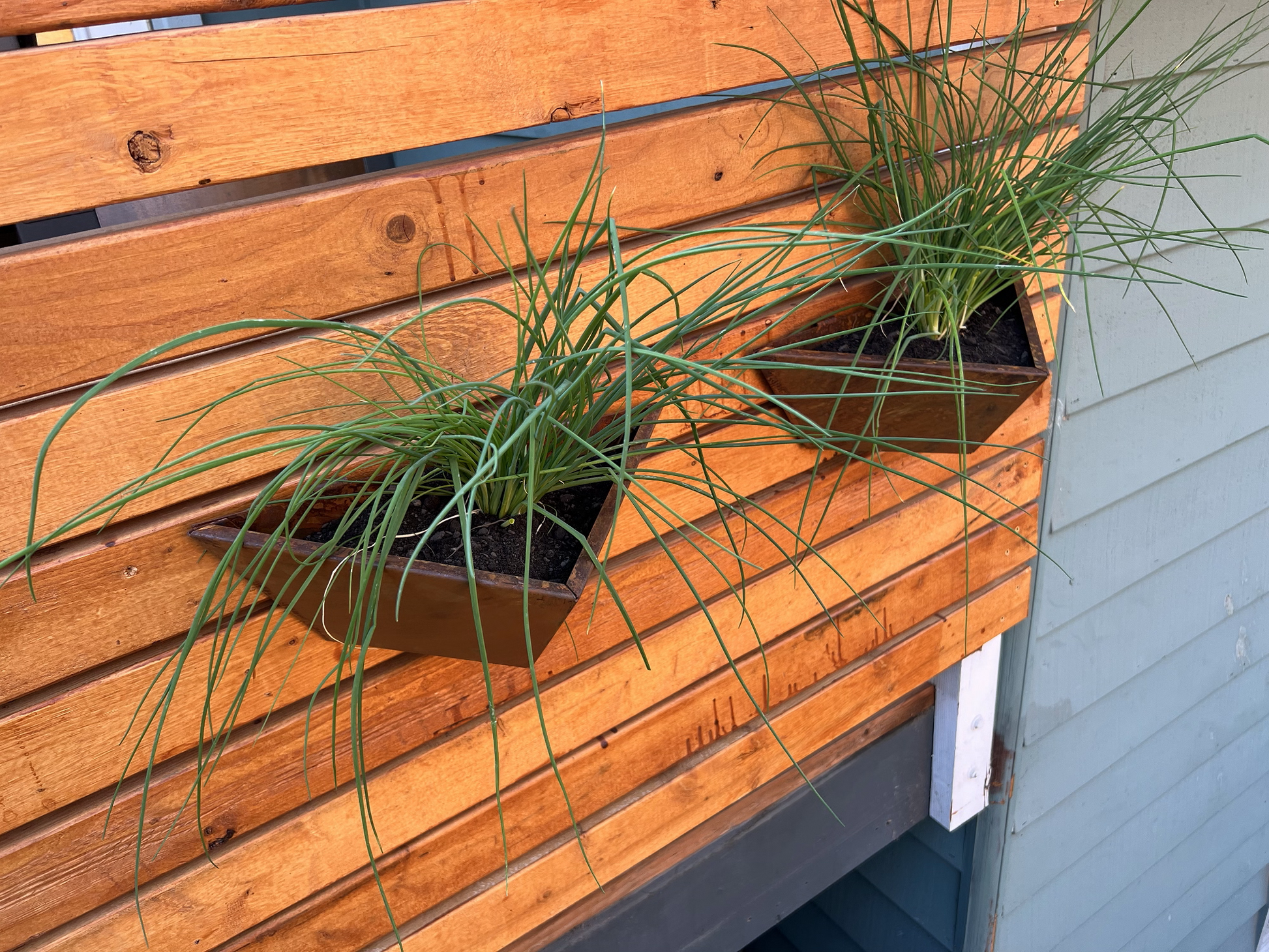 Wall and Trellis Planters are a great way to create a green wall and to plant vertically. Manufactured from industrial corten steel the planters arrive in steel gray color and weather over time to form a golden brown patina. The planters are designed to fit and mount directly onto the Nice Planter Corten Trough Trellis or they can also be mounted onto a wall using standard screws. These planters are sold in a two pack.